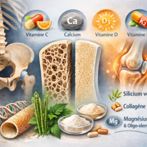 Avec l’âge, le stress oxydatif et l’inflammation chronique, cette synthèse diminue, impactant directement la qualité osseuse et articulaire.
