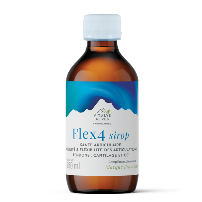 Avec l’âge, les problèmes articulaires s’accentuent, essentiellement dus à la dégradation du cartilage. Le sirop Flex 4 est spécialement formulé à base de plantes comme l’Harpagophytum, le Cassis et le Bambou qui sont bénéfiques pour un meilleur confort articulaire.