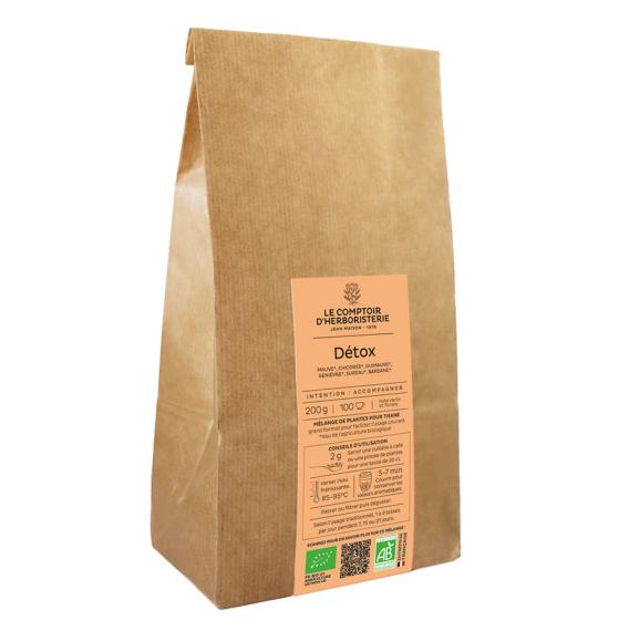 Cette infusion idéale pour les grands changements de saison peut s’utiliser en préparation d’un litre à boire tout au long de la journée accompagnée au printemps de pissenlit frais et de salades du jardin. A l’automne, elle s’accompagne d’un savoureux jus de raisin pressé chez soi. La composition de ce mélange associe les plantes amères et dépuratives, des plantes stimulantes pour favoriser une élimination non-agressive et rester agréable à boire.