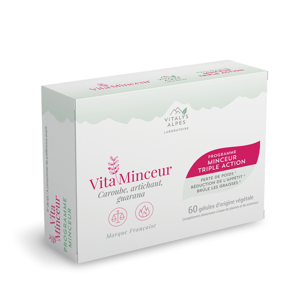 Pour apporter une réponse concrète et efficace à ce phénomène, le laboratoire Vitalys Alpes a formulé́ Vita Minceur, un complément alimentaire complexe innovant à base de plantes, de zinc et de chrome, qui agit sur plusieurs leviers favorisant la perte de poids.