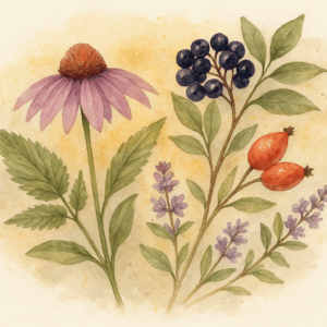 - Sureau noir : antiviral doux, fluidifie les sécrétions et soutient le système respiratoire.